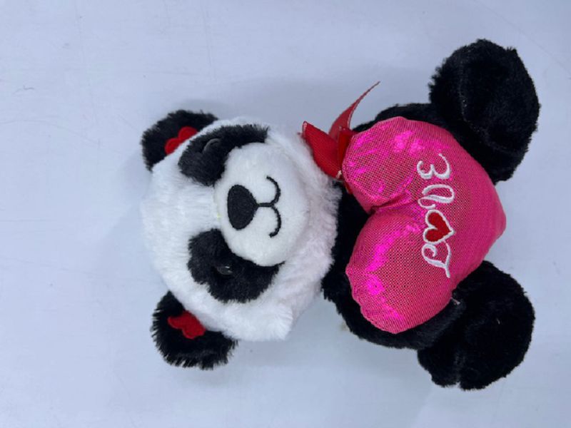 #773-12 6in Panda (love) plastic eyes 2025 (with pink & brown bear mix)